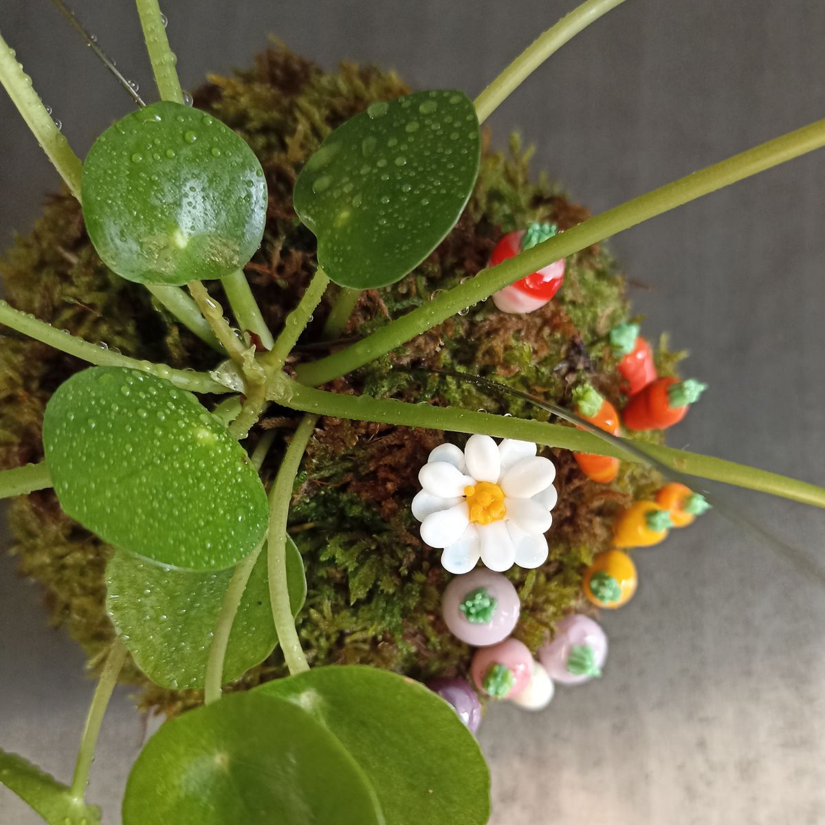 Mes kokedamas ne sont pas de simples compositions décoratives. Ils sont des supports d’histoires, des gardiens d’émotions, des témoins silencieux de nos vies. L’éphémère du végétal et l’éternité du verre s’unissent pour célébrer la beauté du vivant, raconter un fragment de vie, une émotion figée. C’est cette dualité poétique qui fait toute la magie de mes créations : elles sont à la fois ancrées dans le réel et suspendues dans l’intemporel.