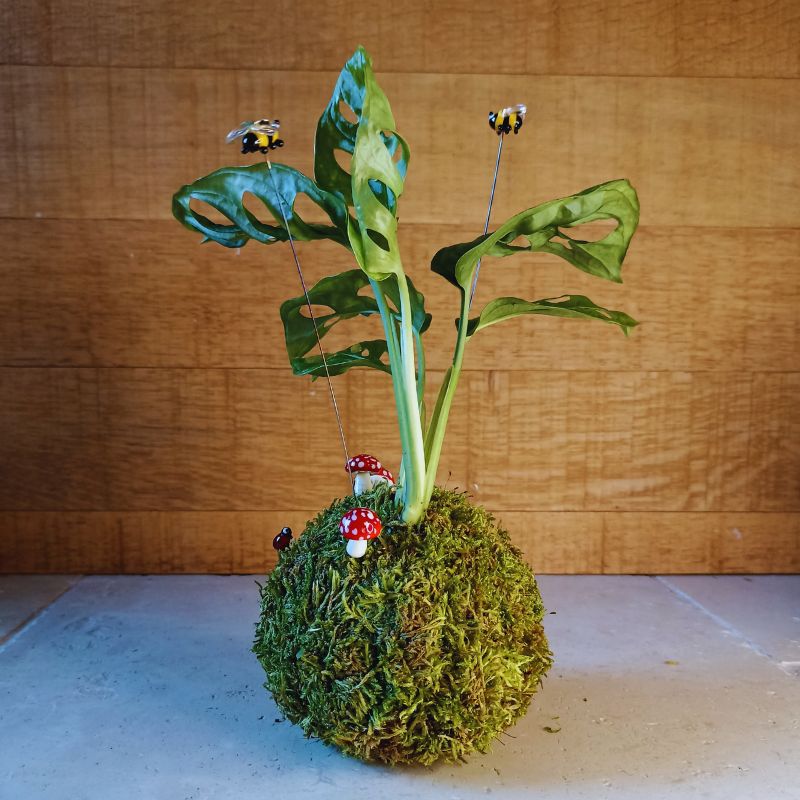 Ce kokedama crée un univers miniature entre nature et féérie. Idéal pour apporter une note végétale et poétique à votre intérieur.